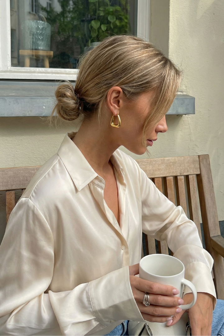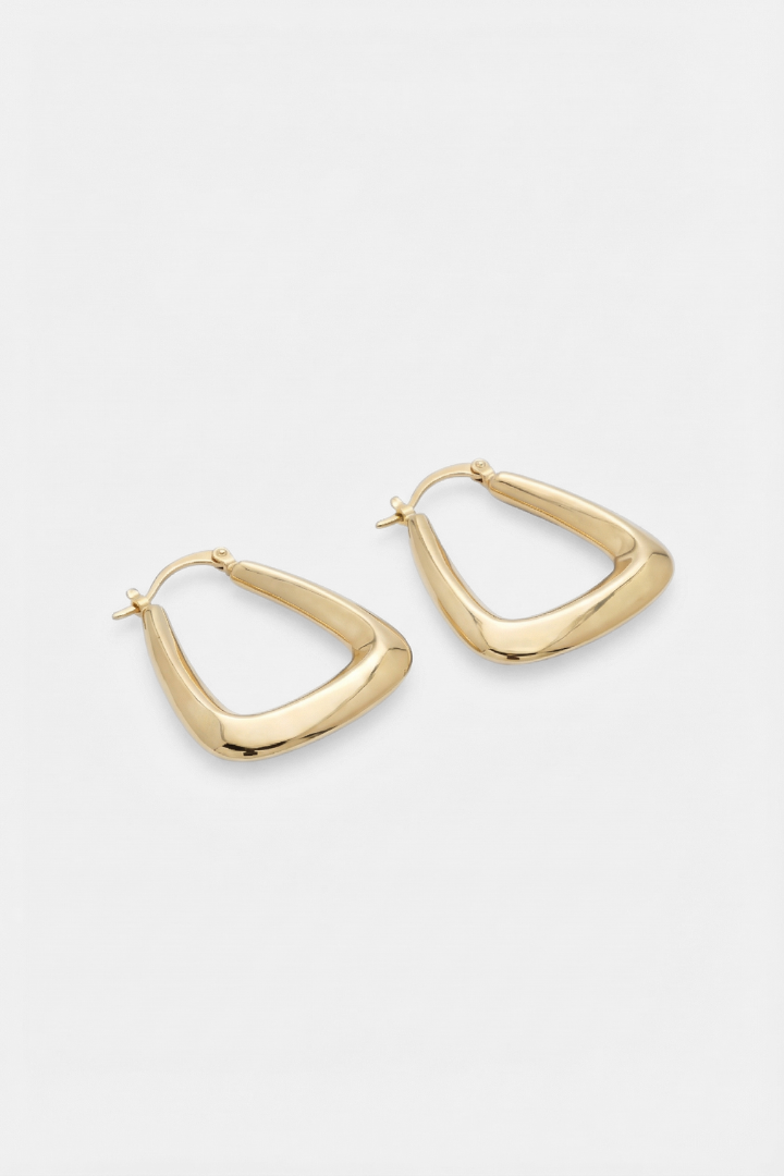 The Triangle Hoops reinterpret a classic shape with geometric precision. Clean, modern lines create a subtle statement that feels both structured and wearable.